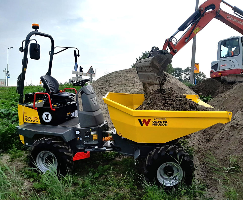 Voor gebruik op ruig terrein is een rupsdumper een goede keuze. Ook kunt u een wieldumper huren, deze is inzetbaar op diverse terreinen, zodat er gemakkelijk worden gereden met vrachten zand of puin. Bovendien hebben de meeste dumpers een draaiende bak, handig bij het kiepen van een lading naast de bak. U kunt bij ons ook een rupskruiwagen huren. Een compacte variant van de dumper, handig voor tuinwerkzaamheden of het verplaatsen van bouwmaterialen.